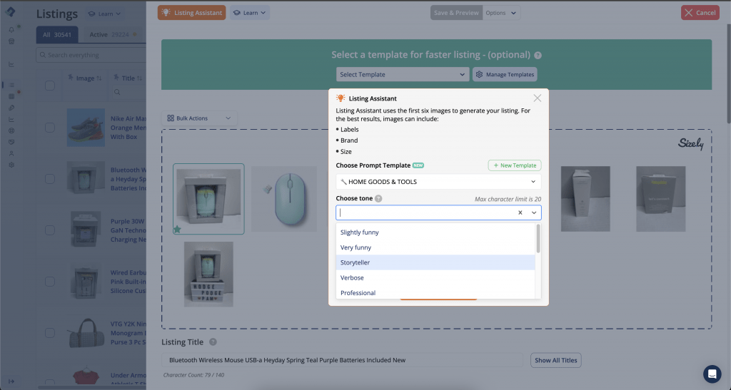 - Automatically fill titles, descriptions, and item specifics