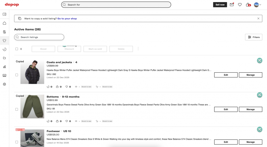 Depop will immediately begin showing you the kinds of listings your buyers see.