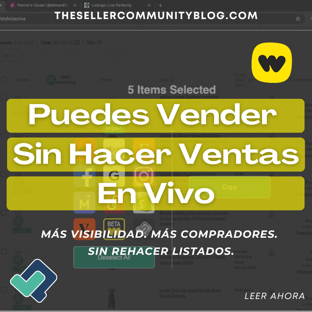 No reemplaza los mercados online que ya usas como Poshmark, TikTok, etc.