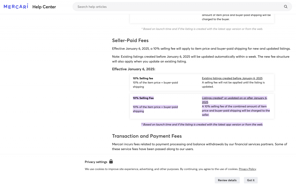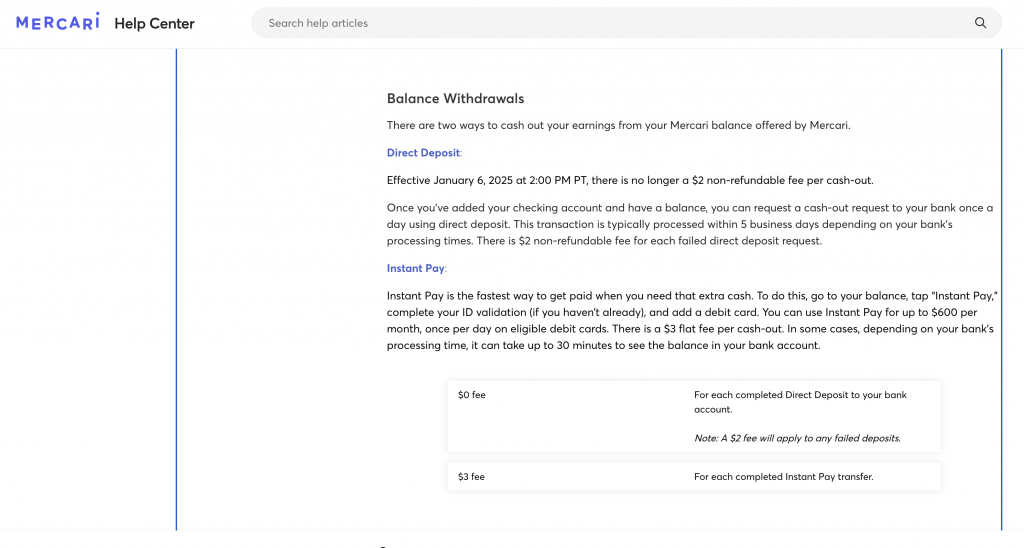 Link to Mercari’s Fees: Mercari’s Seller Paid Fees